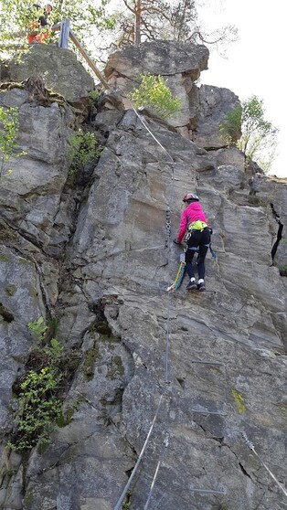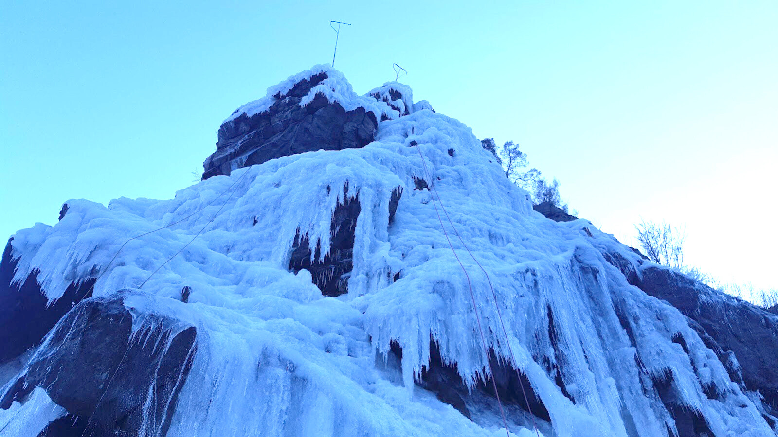 Když zima dovolí, tak se ferrata Vír změní na ledovou stěnu, kde se dá vyzkoušet ledovcové lezení.