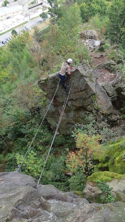 Nedaleko Ledové stěny je nejnovější ferrata. Po kamenných schodech se dostanete na hřeben. Jistící lano opět vede celou ferratou po levé ruce. Záhy po nástupu se octnete na lanovém mostě dlouhém necelých pět metrů, dále stěnou vzhůru (výlez kolmou stěnkou je celkem obtížný a potom krátce zpět k nástupu.