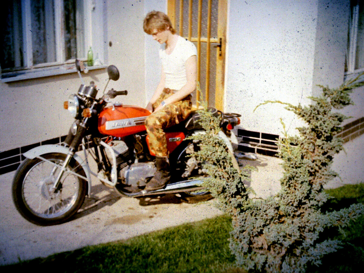 Představte si ten moment, kdy se náš hrdina poprvé objeví ve světle reflektorů, sedící na svém červeném oři Jawa 350, která měla tolik vrásek na svém plechu, že by mohla vyprávět příběhy z časů, kdy dinosauři ještě debatovali o tom, zda je víc cool být T-Rexem nebo Stegosaurusem. Ano, ten stroj byl tak starý, ale náš mladý bohém, v té době ještě student Technické univerzity v Liberci, ho ovládal s grácií baletky na jevišti.